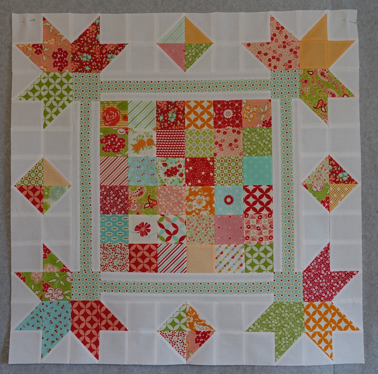 I changed the Thimble Creek pattern by updating the sashing to square in a square blocks and adding an outer border.
