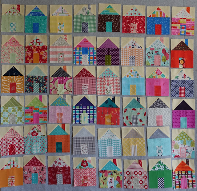 The pattern called for 5 rows of 4 sixteen inch blocks (20 blocks total), I went 5 x 5 (25 blocks total), because I like square quilts.